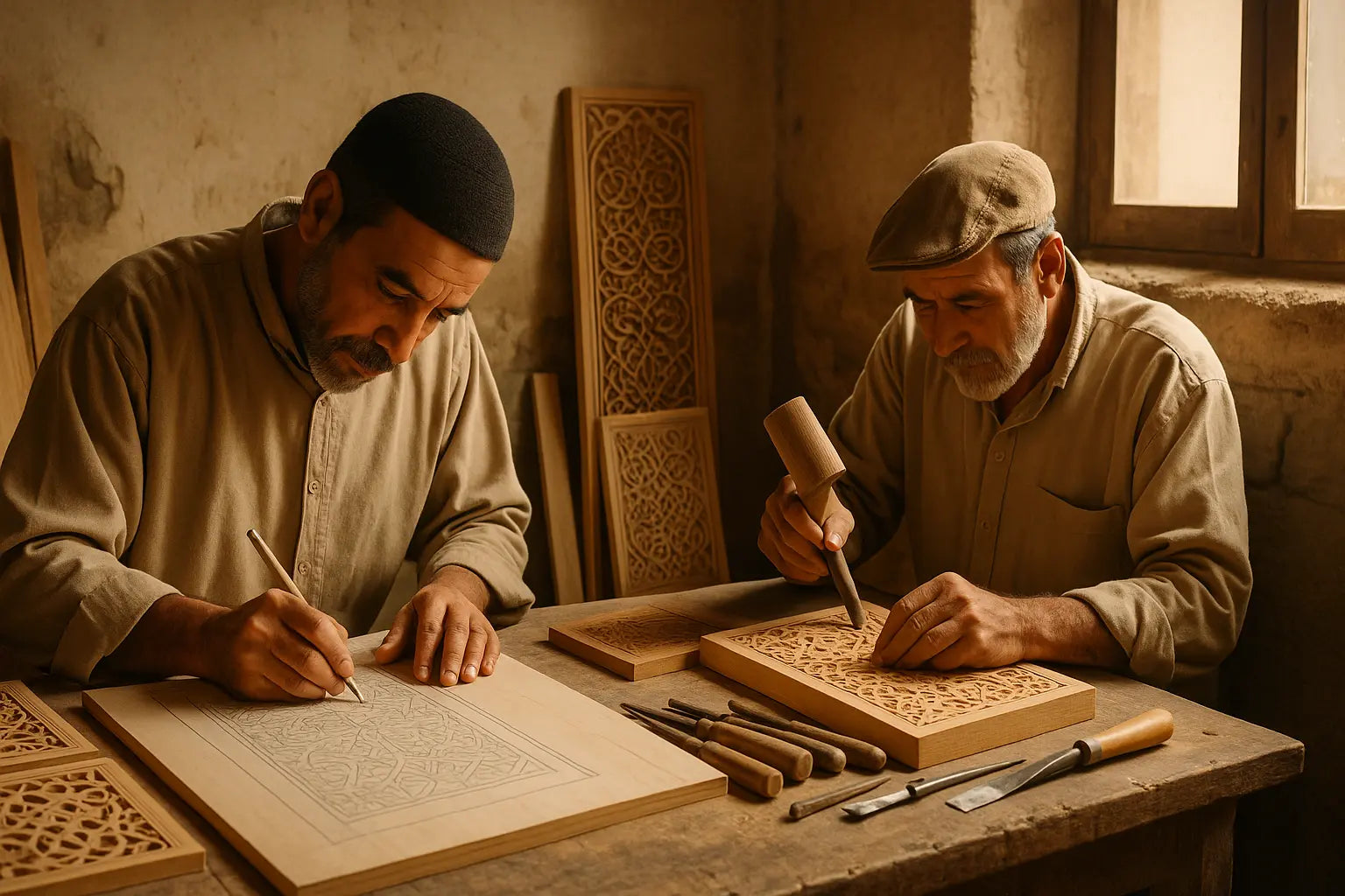 Nos créations prennent vie grâce à une collaboration étroite avec des ateliers et coopératives marocaines. Chaque pièce est le fruit d’un savoir-faire local, où la passion de l’artisan rencontre notre vision d’une décoration islamique moderne et authentique.